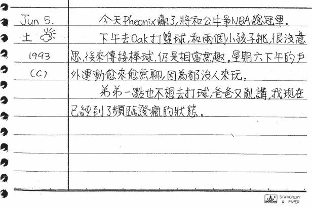 以下是30年前的今天(1993年6月5日)當時16歲的你所親筆寫下的日記: