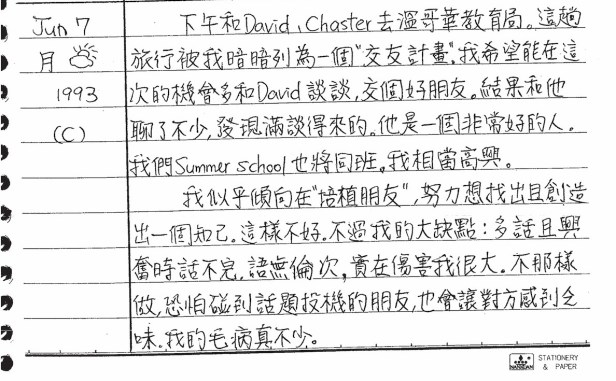 以下是30年前的今天(1993年6月7日)當時16歲的你所親筆寫下的日記: