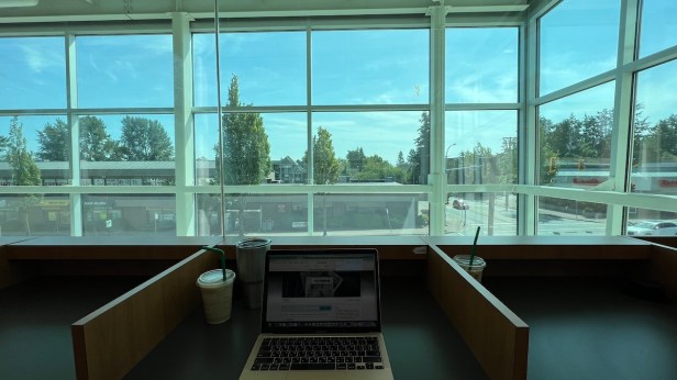 白石鎮的Semiahmoo圖書館之前我們即已鎖定,外觀是非常漂亮的大玻璃,我們停在地下室,上來爬兩層,每一層的平台都透過大玻璃進來了所有的陽光,上來到二樓半的圖書館,整片牆畫著好寬的印地安圖像,不過,裡面不像外面看起來這麼豪闊,不像Burnaby圖書館,不過它和全球其他地方比已是超美麗的了。我們坐一排面對外玻璃的,左右兩邊都是亞洲人佔著,大陸來的中年男子早上就安坐在此看YouTube影片,接電話大概都講房地產的東西,有錢人只有花錢花時間,或許也蠻無聊吧。