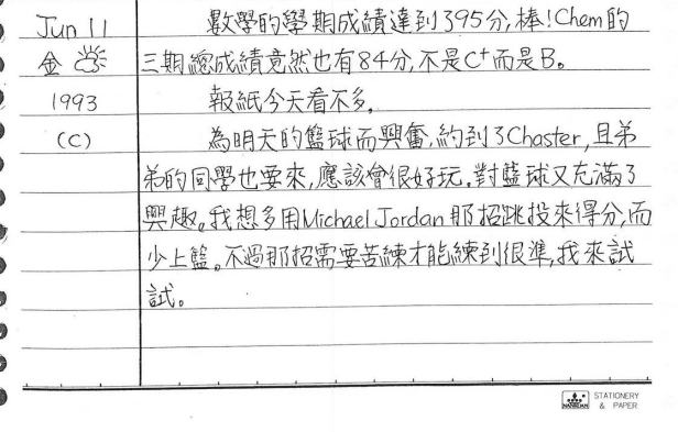 以下是30年前的今天(1993年6月11日)當時16歲的你所親筆寫下的日記: