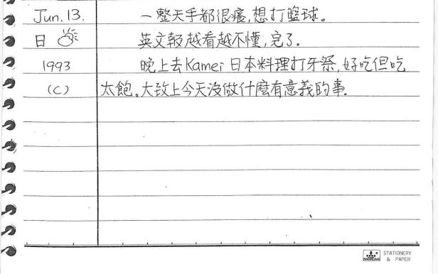 以下是30年前的今天(1993年6月13日)當時16歲的你所親筆寫下的日記: