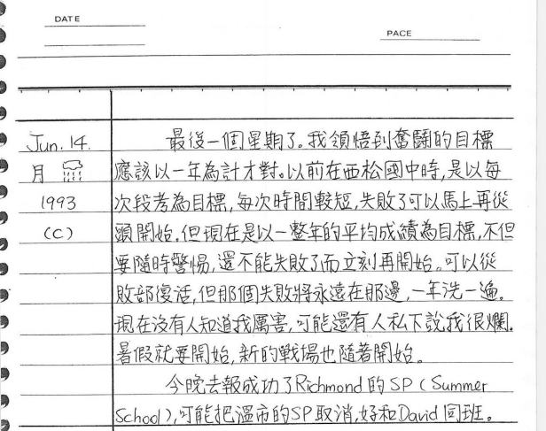 以下是30年前的今天(1993年6月14日)當時16歲的你所親筆寫下的日記: