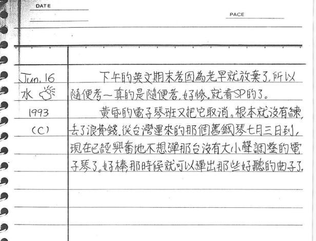 以下是30年前的今天(1993年6月16日)當時16歲的你所親筆寫下的日記: