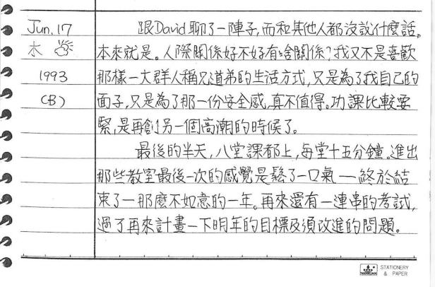 以下是30年前的今天(1993年6月17日)當時16歲的你所親筆寫下的日記: