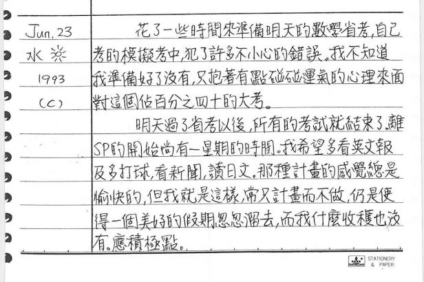 以下是30年前的今天(1993年6月23日)當時16歲的你所親筆寫下的日記: