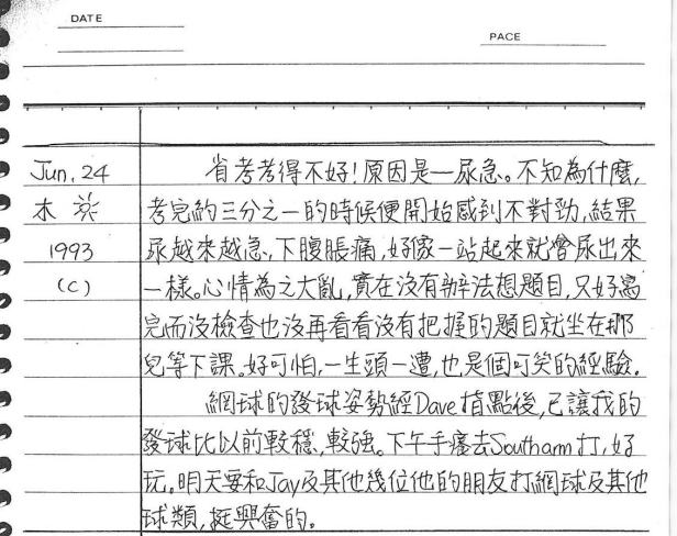 以下是30年前的今天(1993年6月24日)當時16歲的你所親筆寫下的日記:
