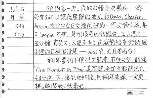 以下是30年前的今天(1993年7月5日)當時16歲的你所親筆寫下的日記: