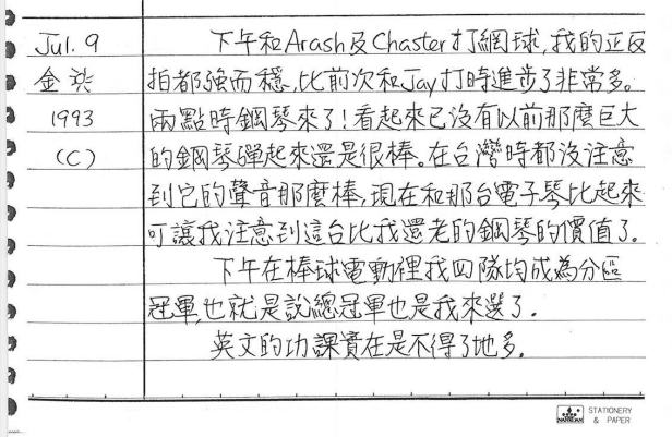 以下是30年前的今天(1993年7月9日)當時16歲的你所親筆寫下的日記: