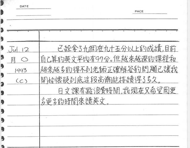 以下是30年前的今天(1993年7月12日)當時16歲的你所親筆寫下的日記: