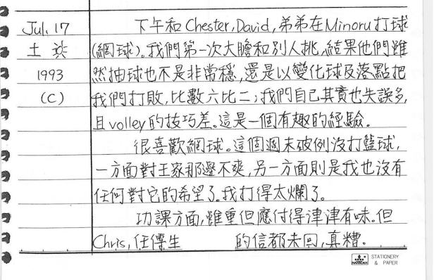 以下是30年前的今天(1993年7月17日)當時16歲的你所親筆寫下的日記: