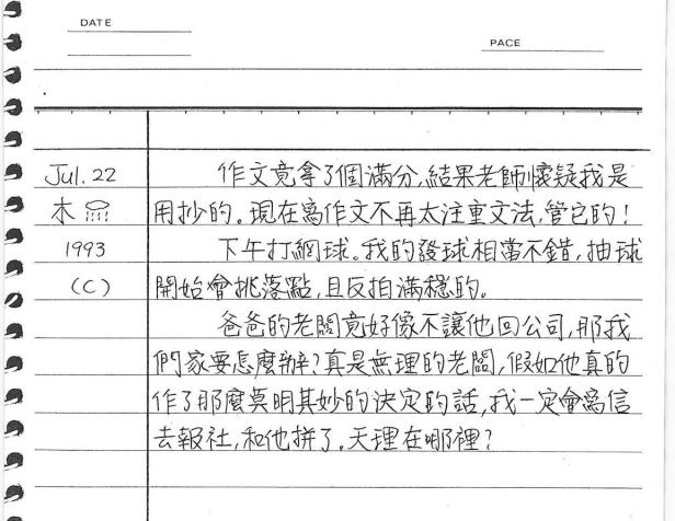 以下是30年前的今天(1993年7月22日)當時16歲的你所親筆寫下的日記: