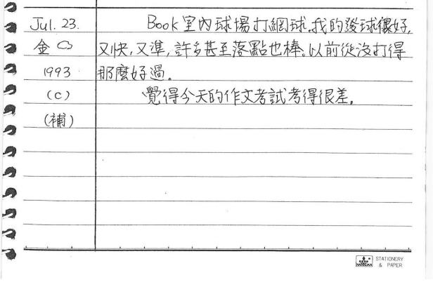 以下是30年前的今天(1993年7月23日)當時16歲的你所親筆寫下的日記: