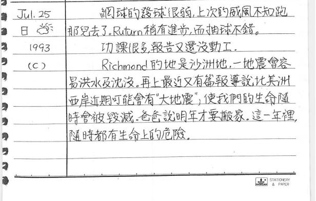 以下是30年前的今天(1993年7月25日)當時16歲的你所親筆寫下的日記: