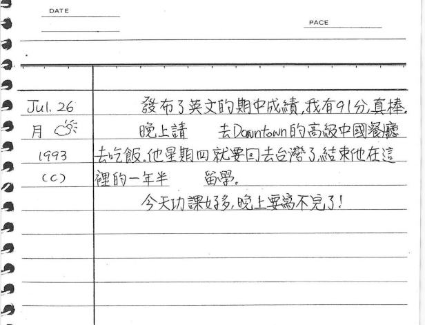以下是30年前的今天(1993年7月26日)當時16歲的你所親筆寫下的日記: