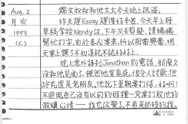 以下是30年前的今天(1993年8月1日)當時16歲的你所親筆寫下的日記: