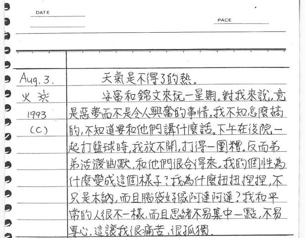 以下是30年前的今天(1993年8月3日)當時16歲的你所親筆寫下的日記: