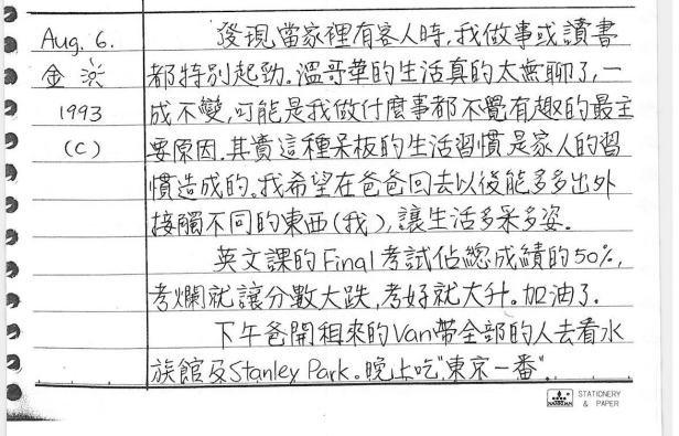 以下是30年前的今天(1993年8月6日)當時16歲的你所親筆寫下的日記:
