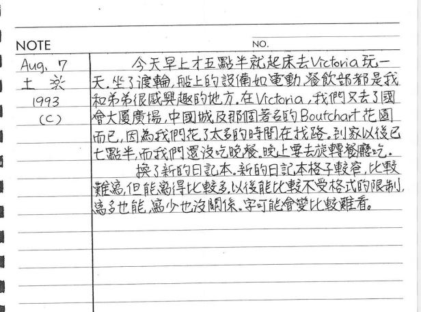 以下是30年前的今天(1993年8月7日)當時16歲的你所親筆寫下的日記: