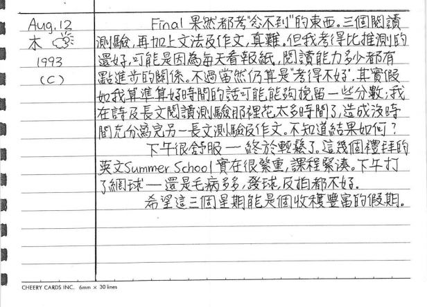 以下是30年前的今天(1993年8月12日)當時16歲的你所親筆寫下的日記: