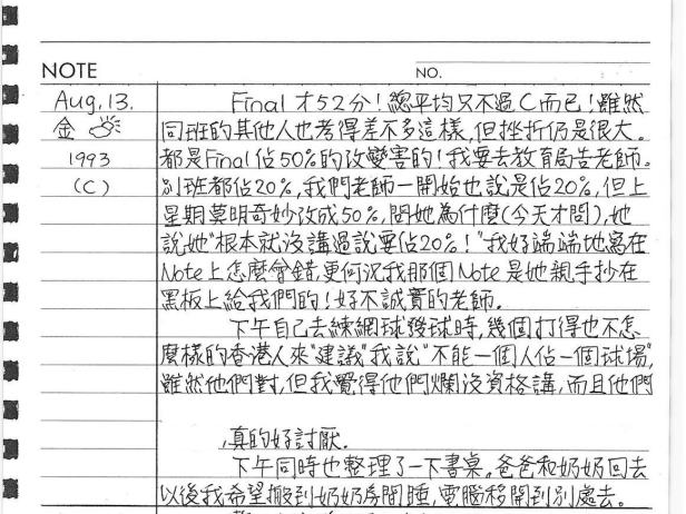 以下是30年前的今天(1993年8月13日)當時16歲的你所親筆寫下的日記: