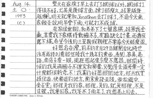 以下是30年前的今天(1993年8月14日)當時16歲的你所親筆寫下的日記: