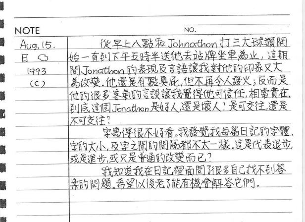以下是30年前的今天(1993年8月15日)當時16歲的你所親筆寫下的日記: