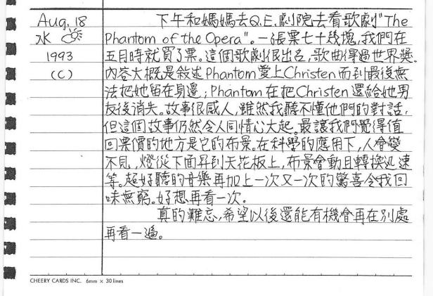 以下是30年前的今天(1993年8月18日)當時16歲的你所親筆寫下的日記:
