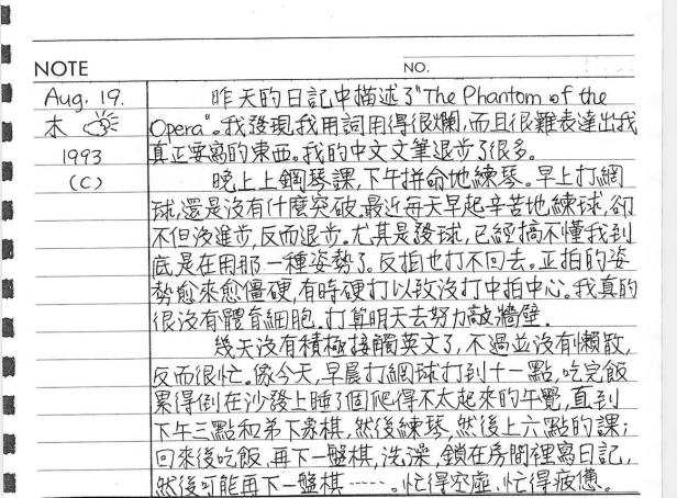 以下是30年前的今天(1993年8月19日)當時16歲的你所親筆寫下的日記: