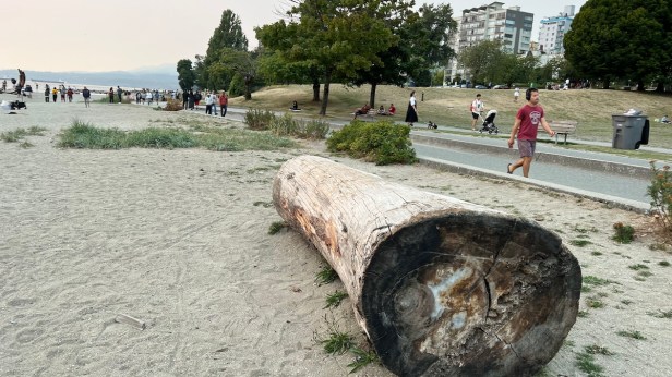 晚上帶兩個孩子與好隊友去「夜遊」,難得。但天還亮,就去看夕陽吧!我以為是第一次帶孩子們去English Bay,結果哥哥提醒已經是第三次了,這次他們又說不下車了,我和好隊友走上沙灘閒步,坐上一根比較高大的橫木,這樣,坐了至少半小時;左前方有兩對亞裔(女)和白人(男)組合,右前方有幾個印度人佈置了一只白帳篷和矮桌有菜以及蠟燭等以及大大的金色氣球「30」,他們等了好久,來的是一個T-shirt宅男,總共只有四、五個朋友祝生。