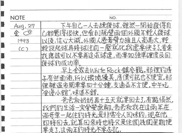 以下是30年前的今天(1993年8月27日)當時16歲的你所親筆寫下的日記: