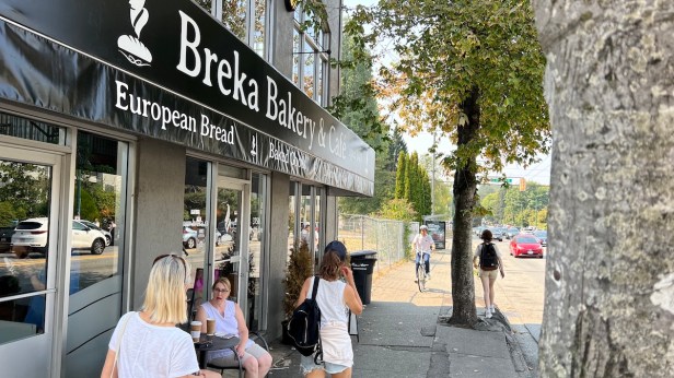今天的行程,因為下午妹妹必須回來,她的骨碎同學與一群女同學約去圖書館,一個大陸同學說她三點之後、五點之前抵達,另一個同學稱讚她「很有規劃性」,所以我們只能去中午的。我們中午就在台灣古早菜「有香」,兄妹各吃一盤高達加幣17元的蝦仁炒飯,來了就只是平平淡淡的一盤,深色的醬油味,沒想到他們說「超好吃」。我們往北跨河進入溫哥華市區,目標是一間1000多人評價4.4高分的甜點,甜點對於我們這些已吃不下的只是一個目的地,重要的是路上「遊車河」的過程。