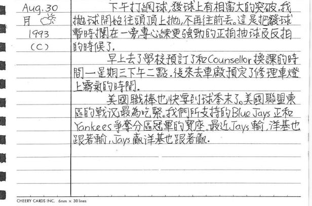 以下是30年前的今天(1993年8月30日)當時16歲的你所親筆寫下的日記: