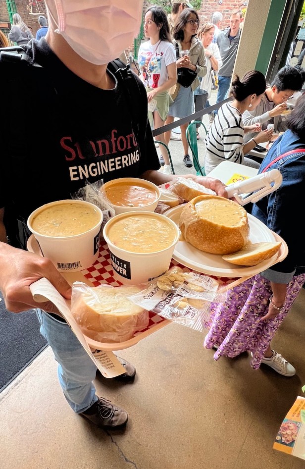 帶兄妹穿過Pike市場,看到那些藝術品、那些魚與海鮮,妹妹非常緊張,這也成了蠻有趣的回憶,我們很快回到車上,才發現只花一個小時,這兩個小時就要台幣600的停車費太可惜,我們把東西放好、藏好,同樣的路再走一次,妹妹就放鬆一半了,這次哥哥上網找到並推薦這間Pike Place巧達湯,又要排隊,一來就想起我以前也來過,問孩子,連記憶力超強、什麼都記得的哥哥都說他沒來過,那麼,就是過去的另一次了。只是我不解為何我對西雅圖的景色永遠都記不下來。