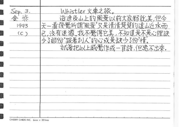 以下是30年前的今天(1993年9月3日)當時16歲的你所親筆寫下的日記:
