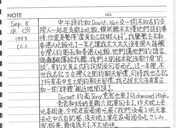 以下是30年前的今天(1993年9月8日)當時16歲的你所親筆寫下的日記: