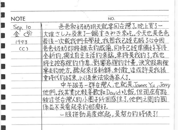 以下是30年前的今天(1993年9月10日)當時16歲的你所親筆寫下的日記: