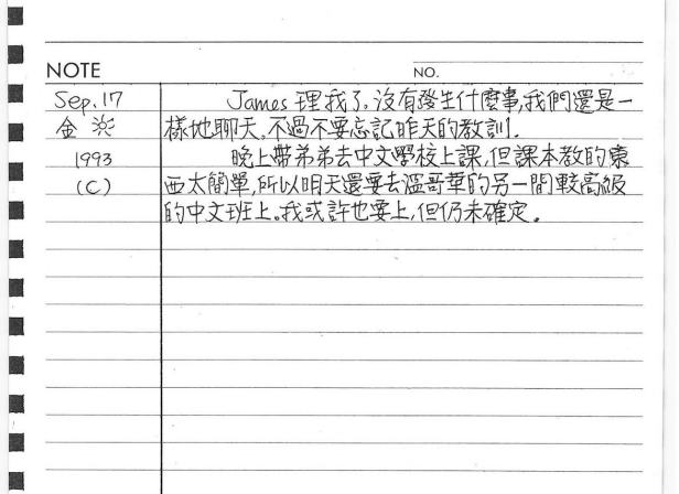 以下是30年前的今天(1993年9月17日)當時16歲的我所親筆寫下的日記: