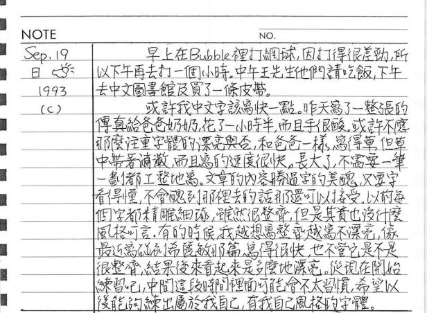 以下是30年前的今天(1993年9月19日)當時16歲的我所親筆寫下的日記: