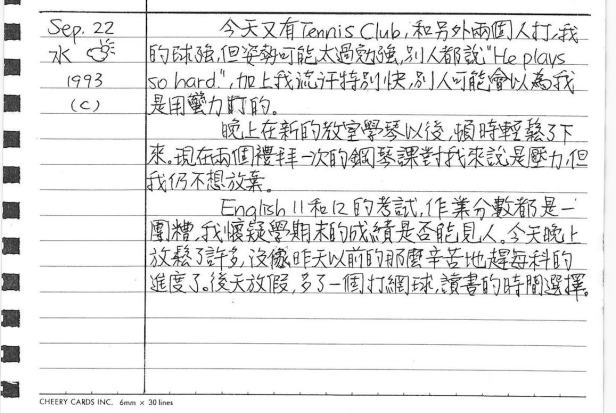 以下是30年前的今天(1993年9月22日)當時16歲的我所親筆寫下的日記: