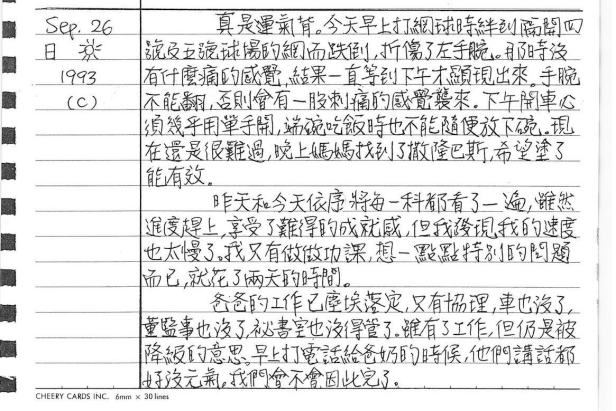 以下是30年前的今天(1993年9月26日)當時16歲的我所親筆寫下的日記: