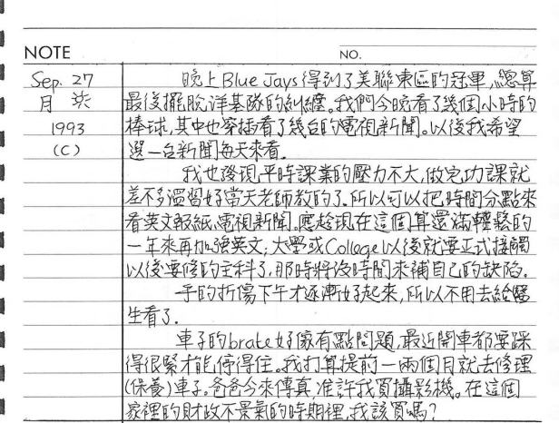 以下是30年前的今天(1993年9月27日)當時16歲的我所親筆寫下的日記: