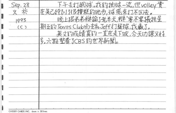 以下是30年前的今天(1993年9月28日)當時16歲的我所親筆寫下的日記: