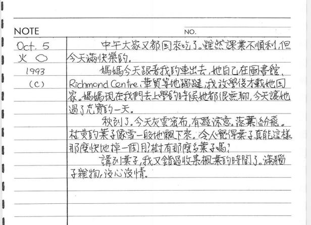 以下是30年前的今天(1993年10月5日)當時16歲的我所親筆寫下的日記: