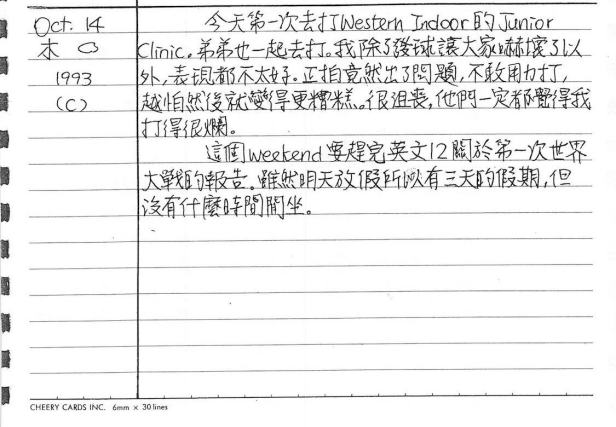 以下是30年前的今天(1993年10月14日)當時16歲的我所親筆寫下的日記: