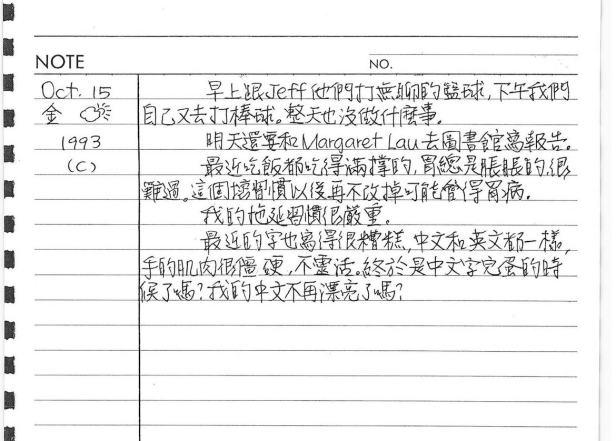 以下是30年前的今天(1993年10月15日)當時16歲的我所親筆寫下的日記: