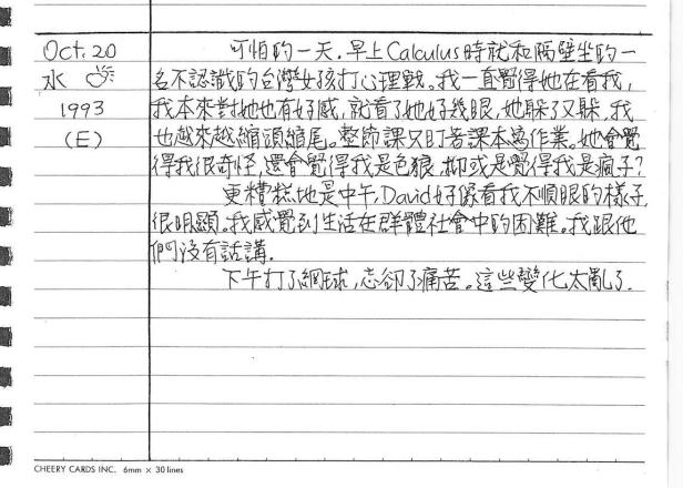 以下是30年前的今天(1993年10月20日)當時16歲的我所親筆寫下的日記: