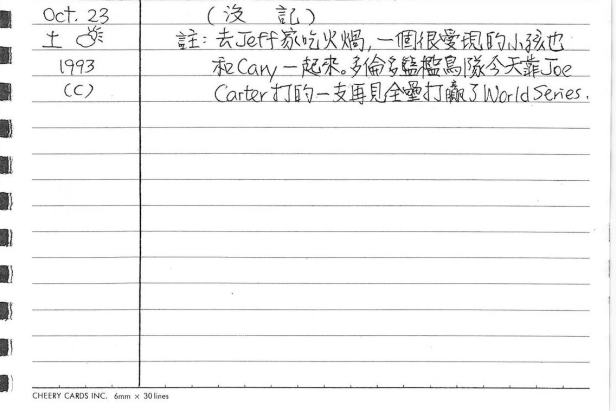 以下是30年前的今天(1993年10月23日)當時16歲的我所親筆寫下的日記: