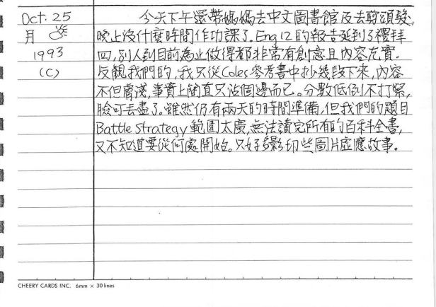 以下是30年前的今天(1993年10月25日)當時16歲的我所親筆寫下的日記: