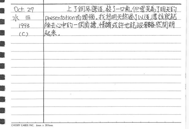 以下是30年前的今天(1993年10月27日)當時16歲的我所親筆寫下的日記: