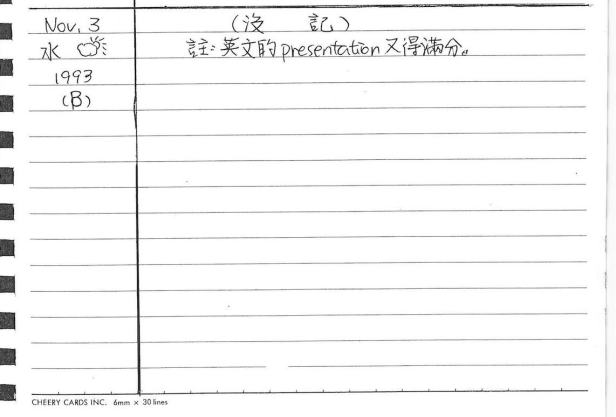 以下是30年前的今天(1993年11月3日)當時16歲的我所親筆寫下的日記: